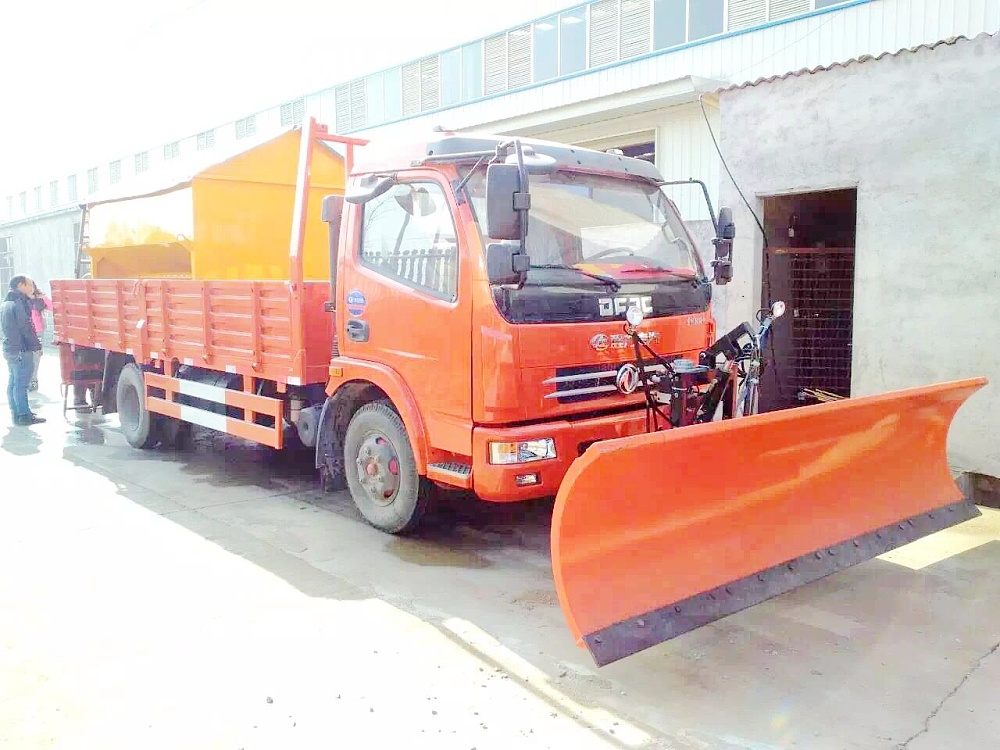 东风大多利卡清雪融雪撒盐车的用途是清除道路上的冰雪,广泛使用于高等级公路、城市道路、机场、广场、风景区道路的除雪、融雪、除冰作业,相对于人工除雪,使用机械除雪具有更优的时效性,大幅提高除雪效率,减少人工劳动强度。使用东风大多利卡清雪融雪撒盐车可以在冬季期间投入它们来确保道路上冰雪的清除以及行车的安全。除雪车安装的推雪铲或扫雪滚刷具有越障功能,能够很好的处理各种路面的雪和冰,如浮雪,薄雪,薄冰等,同时它可以在凹凸不平的路面行驶,作业及回避路障,工作效率高。